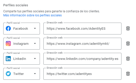 Si estás pensando en enlazar tus redes sociales al sitio web de tu Perfil de Empresa, debes deshacerte de esa idea. Recuerda que la propia herramienta de Google Business Profile te permite añadir los enlaces de tus perfiles sociales. Google Business Profile es la mejor herramienta para cautivar audiencia y facilitar a los clientes la puesta en contacto con tu establecimiento.