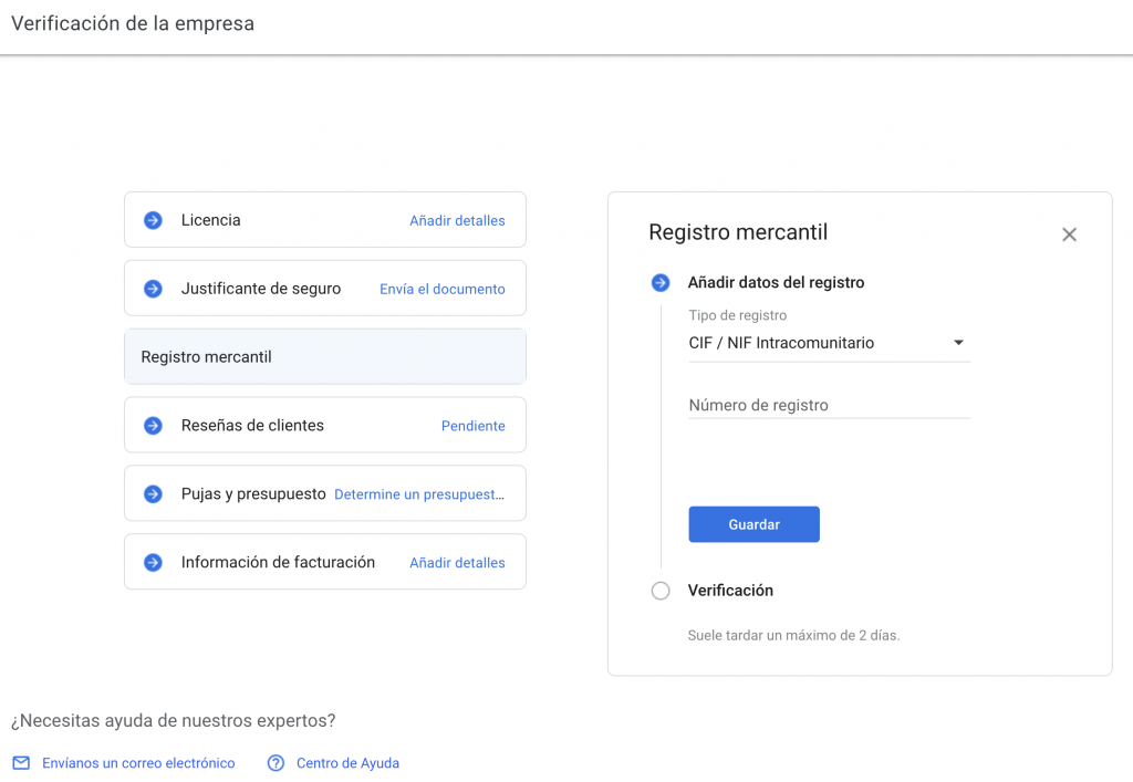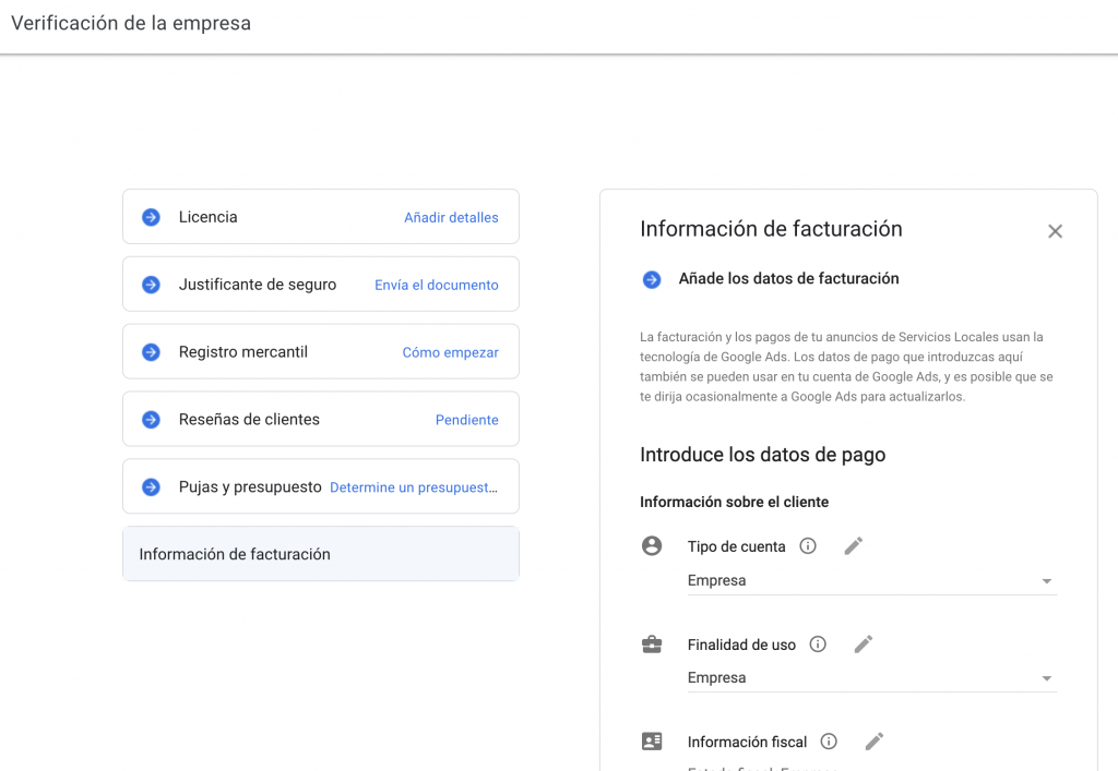 El proceso es relativamente sencillo, no obstante, Google nos pide bastante información de nuestra empresa.