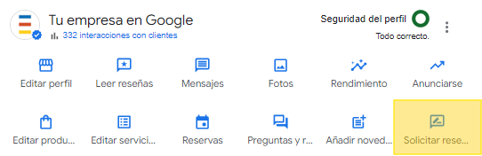 3. Elige la opción ¨Solicitar reseñas¨.