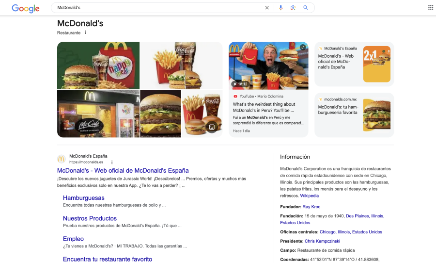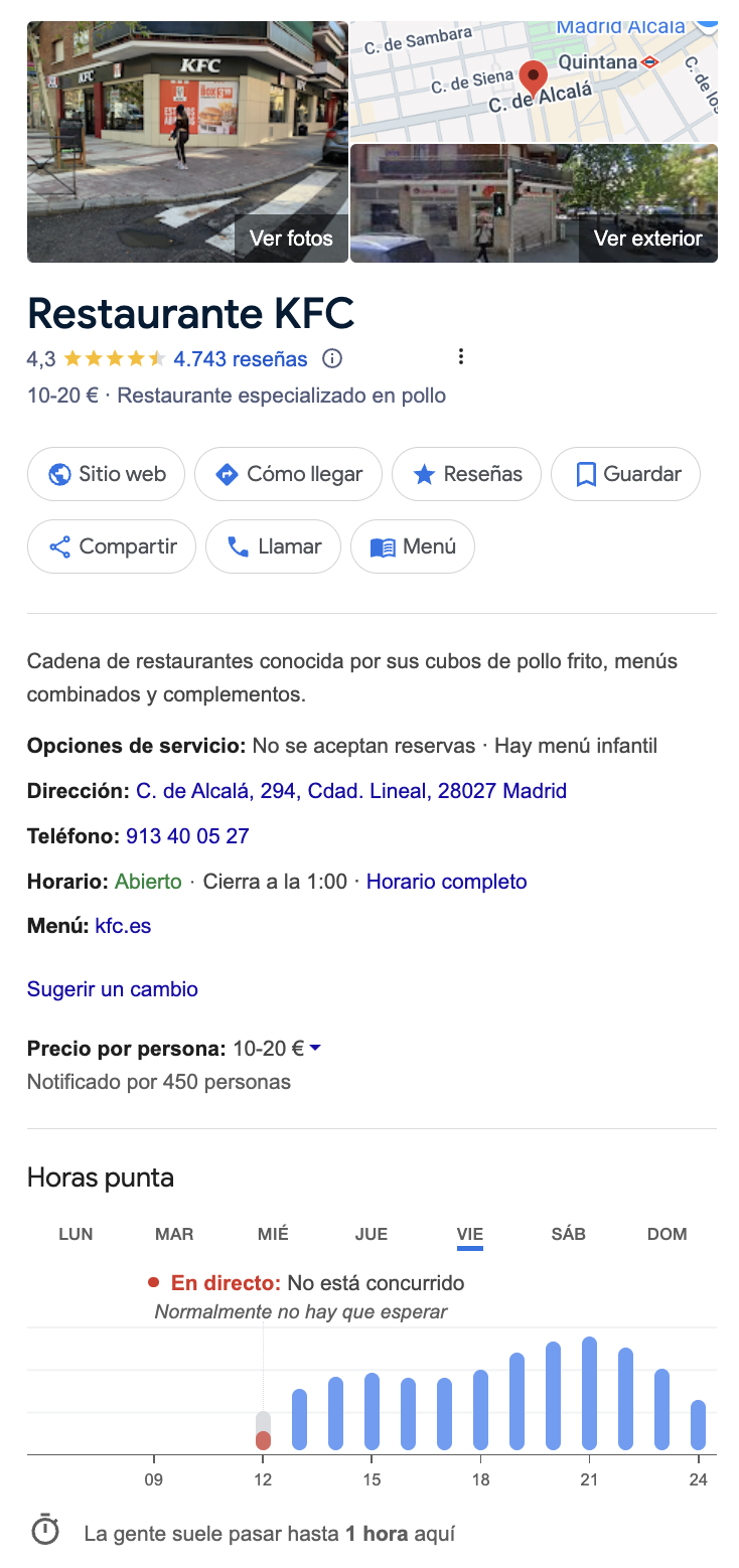 – Estructura: Paneles de conocimiento de Google Business Profile tienen una estructura diferente a la de los otros productos. Más allá del NAPW, las publicaciones, la disposición de las fotografías y de los botones de RRSS pueden darnos pistas sobre que lo que estamos viendo pertenece a GBP.