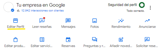 - Desde tu ordenador, inicia sesión en Google Business Profile. En el caso de que gestiones varios localizaciones, selecciona la que quieres editar.
