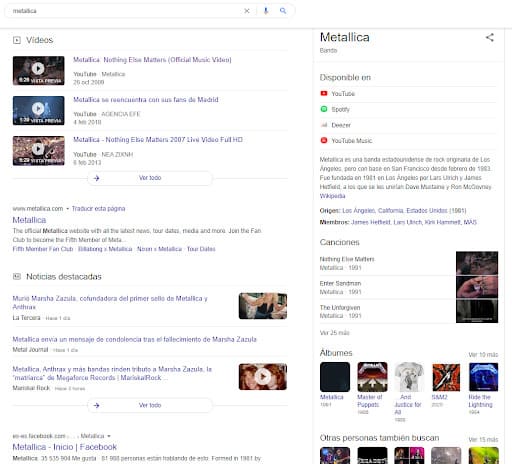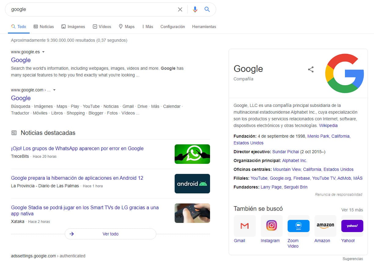 Como podemos ver, a la derecha de los resultados web y las noticias destacadas, vemos un panel de información que nos muestra datos sobre nuestra búsqueda.