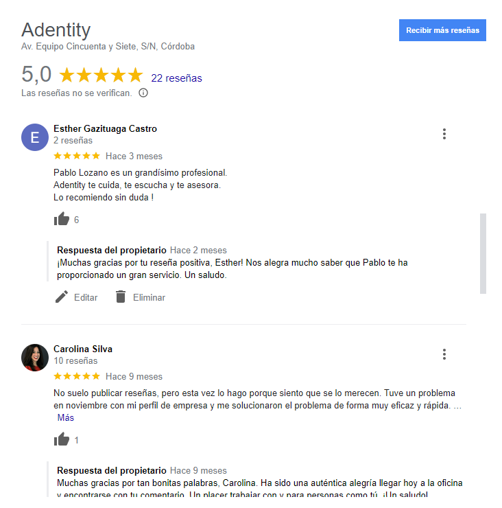 Google reconoce que los perfiles con reseñas positivas y de calidad favorecen al posicionamiento local.  Además de ganar visibilidad, conseguir y responder a las reseñas aporta confianza al usuario, siendo un importante factor de conversión.