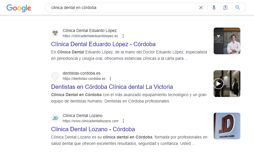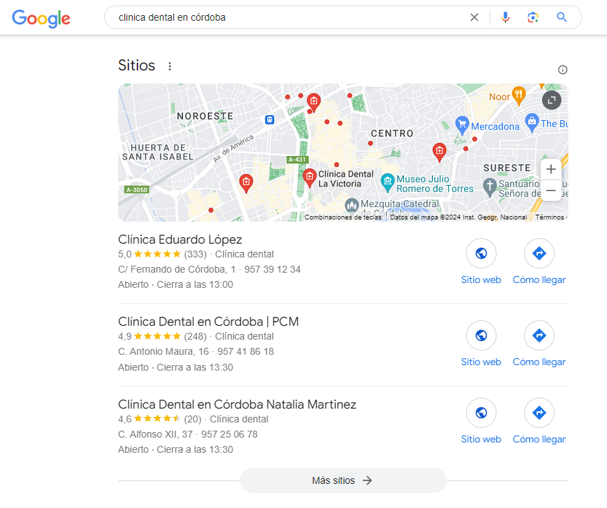 Por ejemplo, los usuarios que busquen “clínica dental en córdoba”, podrán encontrar dos tipos de resultados locales: