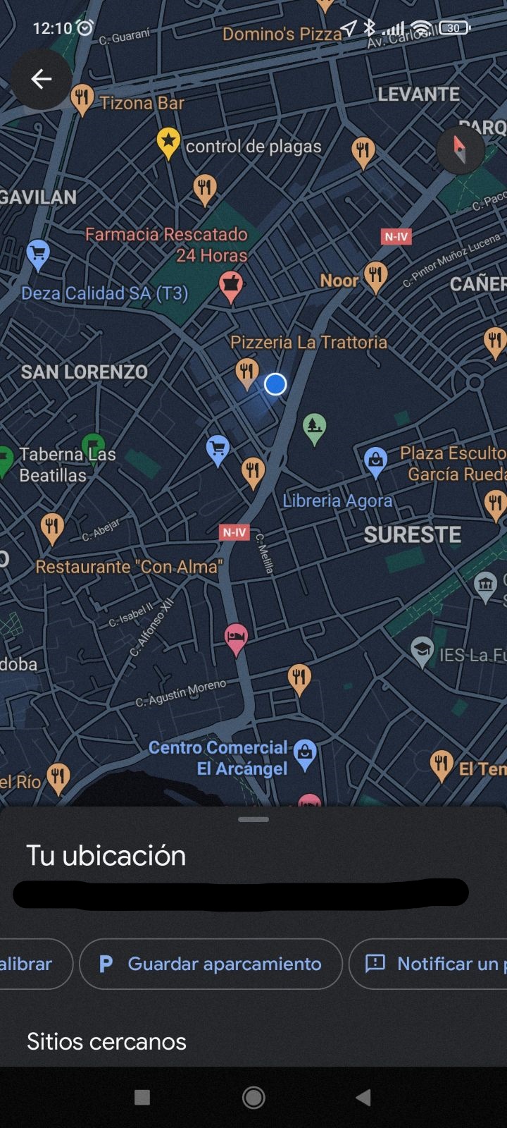 1º Paso – Abrir la app de Google Maps y buscar tu ubicación (punto azul de la captura)