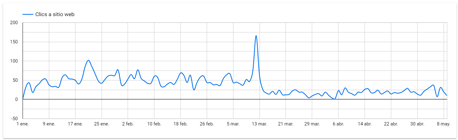 Para ilustrar de una manera visual este impacto ocasionado en empresas de diferentes sectores, hemos pensado en compartir con vosotros los gráficos de acciones de los clientes en algunas de las ficha de empresa de los clientes que gestionamos en Adentity. En este blog ya hemos hablado de algunas limitaciones en GMB que Google se ha visto obligado a imponer debido a la reducción de personal en sus equipos de asistencia, entre otros.