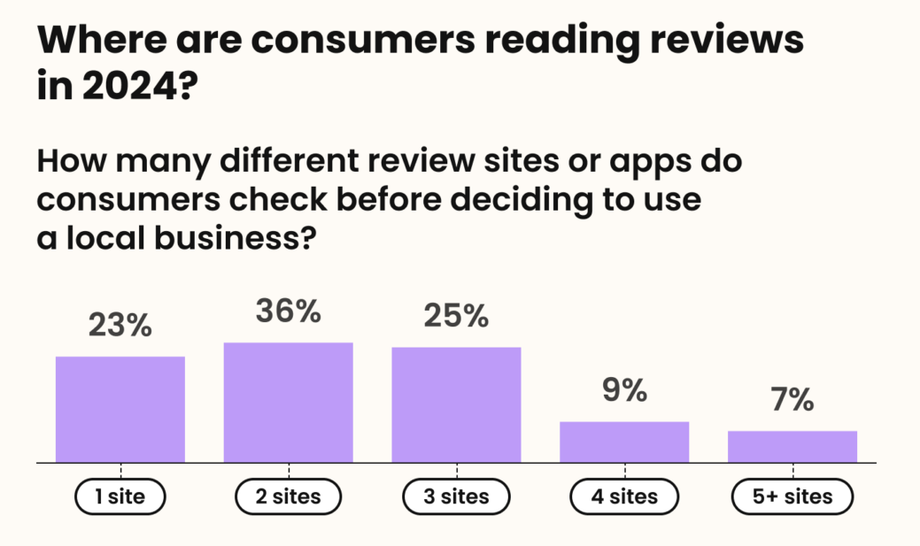 Sin embargo, los consumidores buscan, cada vez más, comparar opiniones en diferentes sitios, sean o no especializados en reseñas. Un 77% de los encuestados revisa al menos 2 plataformas para ello.