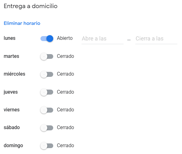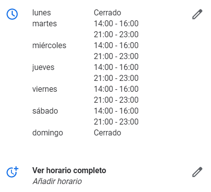 Por ejemplo, si durante un servicio tenemos un horario determinado para la cocina, una franja de hora feliz, un horario específico para recogida de pedidos en nuestro local o bien de entregas a domicilio, podremos añadir en nuestra ficha de empresa horarios independientes, sin que el horario de apertura normal se vea afectado.