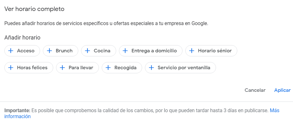 Y esta actualización no es otra que la posibilidad de añadir horarios específicos para servicios especiales de las empresas.