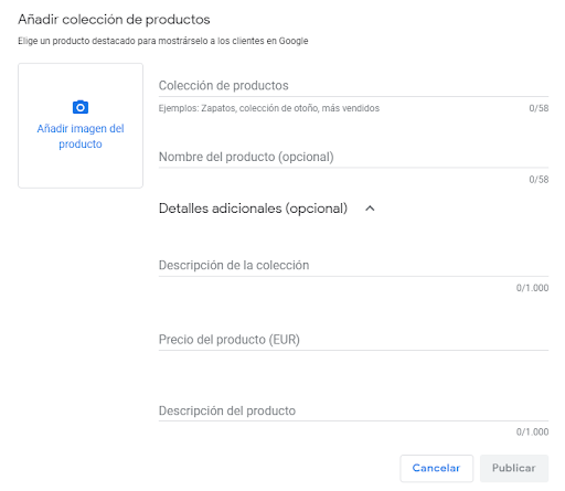 Como ya hemos mencionado, a través de este editor de productos de Google, crearemos un catálogo digital bastante completo que nos ayudará a ser más relevantes, a destacar los productos que nos interesa y a que los usuarios encuentren nuestra empresa porque tenemos lo que necesitan y podemos mostrárselo directamente en el resultado de búsqueda, invitándoles siempre a visitarnos, llamarnos o acceder a nuestro sitio web.