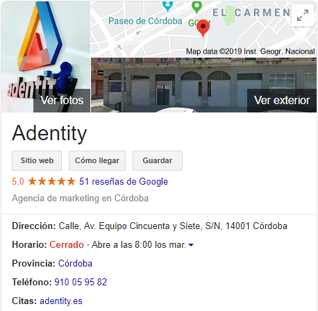 Google My Business nos permite, como hemos mencionado anteriormente, gestionar los datos de contacto de nuestro negocio en Google. Podemos corregirlos si son incorrectos, además de mantenerlos actualizados ante posibles cambios de temporada, una mudanza, cambio de teléfono, etc.