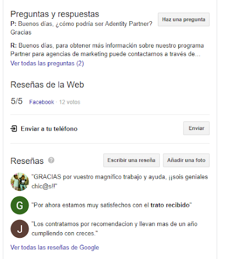 Por otro lado, los usuarios también podrán hacernos llegar su opinión o dudas sobre la empresa a través de las preguntas y respuestas de Google. En estas, los usuarios podrán incluso conversar entre ellos: ante la pregunta de alguien interesado en nuestro negocio, puede responder cualquiera que tenga la información solicitada y quiera colaborar. Nosotros también podremos hacerlo como propietarios o supervisores de la ficha.