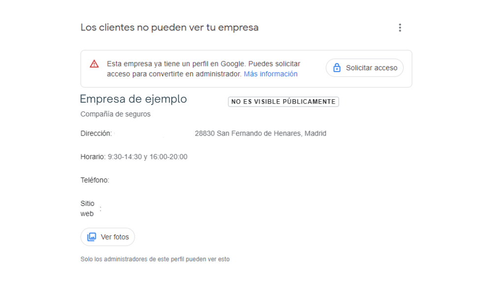 1 – Ya existe un perfil verificado para esa empresa en Google Maps.