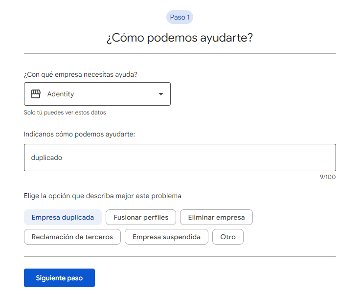 Google también se equivoca y puede marcar tus perfiles como duplicados de forma incorrecta. Si tienes un perfil marcado como duplicado y no se corresponde con ninguna de las casuísticas anteriores, puedes contactar con el equipo de asistencia para solucionar el estado del duplicado.