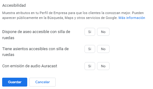 - Añadir atributos en Google Business Profile
